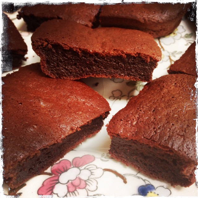 Chocolate and Beetroot Brownies. Recipe found in River Cottage Cookbook by Hugh Fearnley Whittingstall. They were very easy to make – I had fresh beetroot here which I just wrapped in foil and baked for about 45 minutes and then peeled. I don’t see any reason why you can’t make these with the pre-cooked beetroot though. The recipe uses dark chocolate, very little sugar and just a sprinkling of flour so I’m telling myself it was healthier than regular brownies and a good way of sneaking in beetroot to a child’s diet.