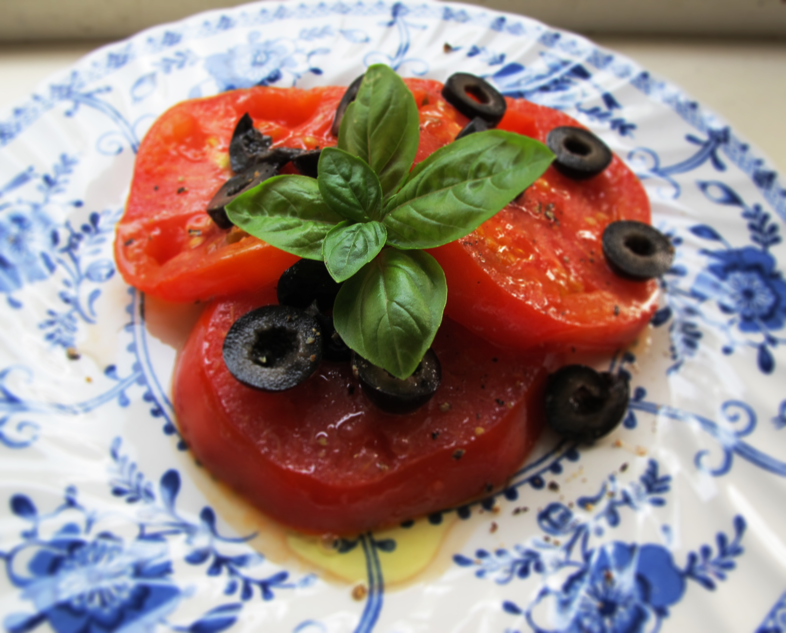 By late July, when the heat is beating down, you finally get to slice one still warm from the sun. Drizzle on a little olive oil, a pinch of Malden Salt, and voila: perfection.