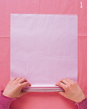 1. Stack your tissue. Fold the tissue, accordion style, in 1 1/2″ wide folds, creasing the folds.