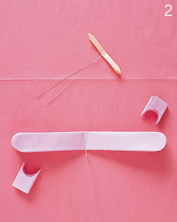 2. Fold a length of florist’s wire in half. Slip over middle of folded tissue, twist. Trim the ends of the tissue (rounded or pointed depending on preference).