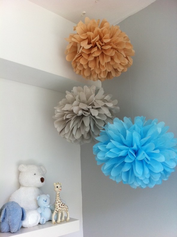 I came late to the pom pom party. In fact had I not been drooling regularly over kids’ room tours on ohdeedoh and various style blogs, they may yet have passed me by. But slowly I noticed these ethereal tissue paper bundles floating in some very chic nurseries and once I’d ascertained exactly what they were, and how to get them, I was on a mission. It seems that i’ve missed a trick because they have, in fact, become something of a phenomenon in crafty circles since their ‘invention’ by Martha Stewart some time around 2006. Whether or not this is entirely true, Her Royal Homeliness does have a knack for taking a craft trend and giving it a contemporary spin and if the images on the MS website don’t tempt you then you will probably never be a convert (you can buy them via the MSL Amazon store here)
