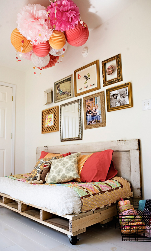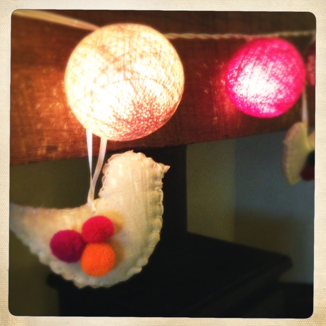 Of course, I realise any DIY bride, party and wedding planner worth their salt can whip up a roomful of these frothy little beauties blindfolded, but I wanted a more permanent reason to use them. So, as I’m a sucker for anything that will give the decor in my blah rented apartment in Hong Kong a bit of oomph without a) spending too much and b) infuriating the landlord, I determined that I needed to work them in to my own home. Hubby quickly vetoed any area he uses regularly (‘but surely they would look more masculine in monochrome shades?!’) So that left the kids’ rooms and the perfect opportunity to indulge my pom pom fixation, because they are both still at the age where MUMMY DEAREST KNOWS BEST mwah ha ha. So the baby (boy) got the pom poms and all my husband could say to the contrary was “you DO know he’s a boy, right?”. Pah.
