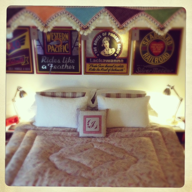 As well as all the extra windows to look out of and of course the dream of being a detached house, it means we have a whole load of new rooms to fill and do up. Something I particularly love doing. I’m not an interior designer sort of person, nor am I particularly avant garde or visionary when it comes to the look of a house, I just like what I like and most of that involves things either found, on loan, acquired or bought (cheaply). I love my house to be interesting, comfortable and welcoming with lots to look at and a bit different from the norm. I have a particular love of fabrics and bed linens and quilts and cushions. I love colour and pictures and tins and containers to put things in. I like enamel and old cutlery and interesting tea pots and plates and things with a bit of a story. I like houses with fresh flowers and I like to be able to see my children’s toys but to also be able to put them away sometimes. I like things for the kitchen and I like curious things hanging from ceilings. My husband likes all these things, as well as Star Wars, kitsch tapestries, dinosaurs, toys and books. Together our house is a bit of a jumble but it inspires us and makes us happy and that, I think, is the most important thing about a home.