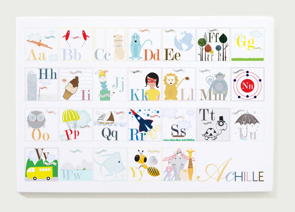 9. Modern Pop’s alphabet frieze is like a little ray of California sunshine for your kid’s room $60 (19″ x 13″)