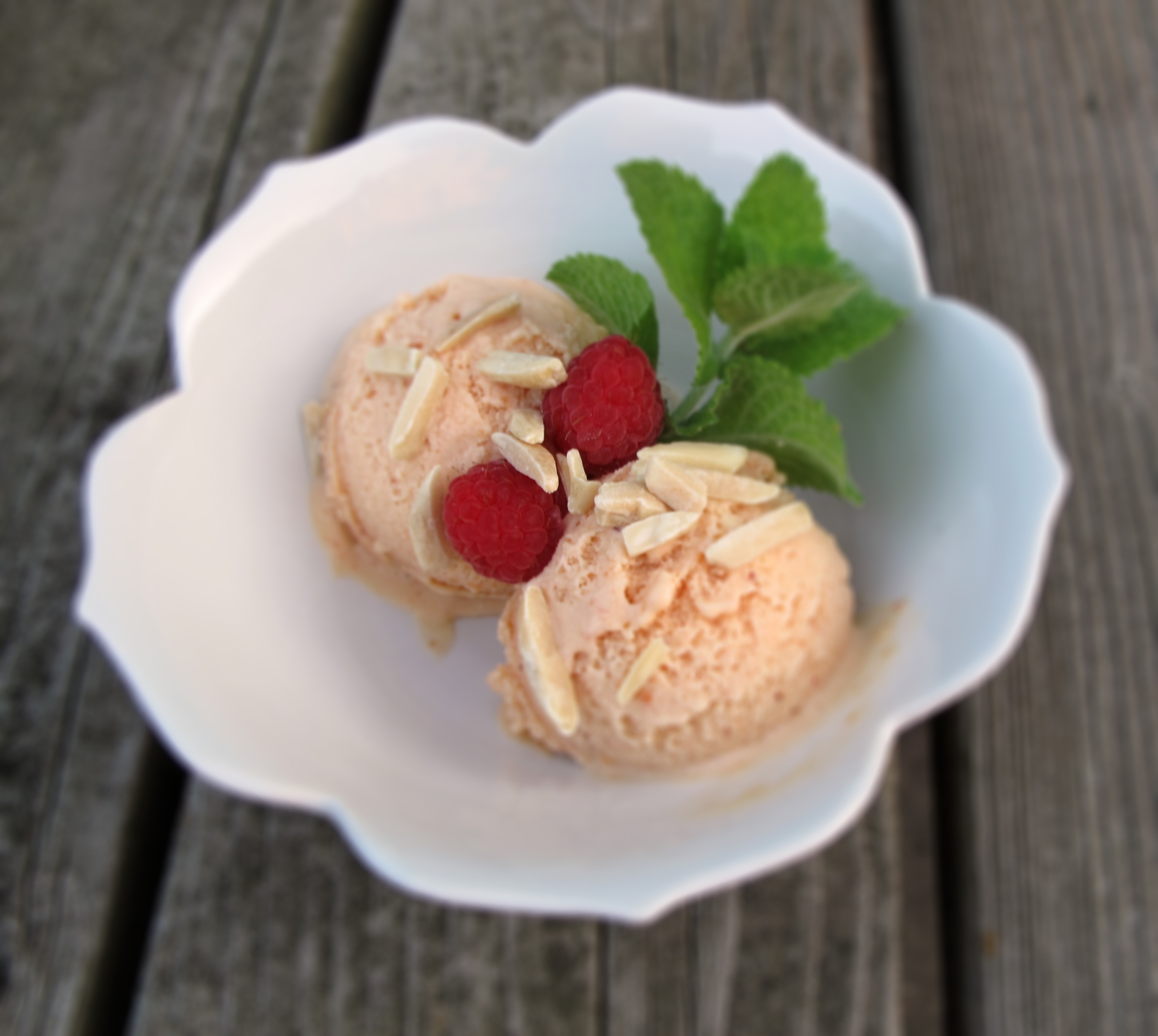 As they sat there smiling up at me with their golden glow in the evening sunshine, the answer hit upon me: they have to stop being apricots, and start being apricot gelato. Now they reside happily in my freezer in a couple of quart tubs waiting to be scooped out onto sugar cones and sprinkled with toasted almonds or served in a glass with a wafer and some raspberries.