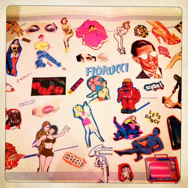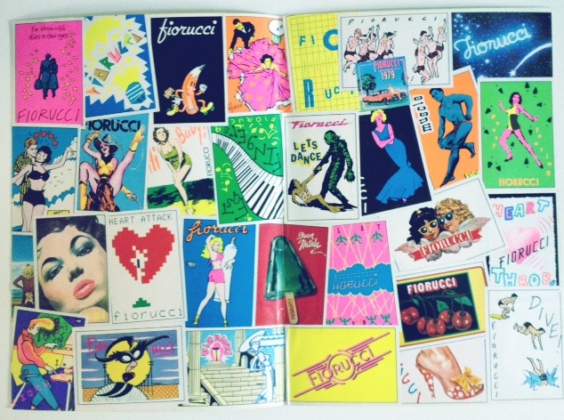 In my formative fashion teenage years there was one brand which I was truly obsessed by, Fiorucci. The store on the Kings Road was my very favourite place to visit and, having a pretty fashionable Mum, I was taken there quite frequently. It was full of the kind of Pop 80s style I most loved. Bright, brash and painfully hip. I would rifle through the rails for ages and ages, holding on to the things I most liked for just a little too long until Mum noticed. Sometimes this worked but mostly it didn’t so I’d impatiently lie in wait for her Fiorucci hand me downs which were even better. What I did buy though, every single time we visited, was a pack of stickers, which I could afford with my pocket money and allowed me my very own little bit of Fiorucci cool.