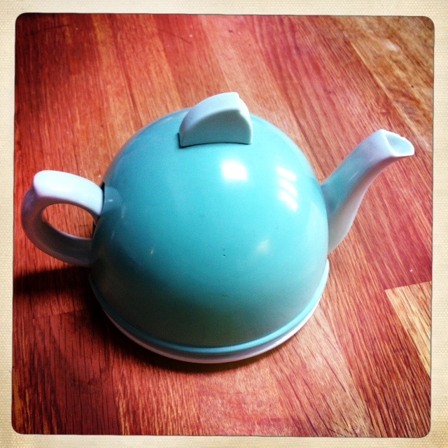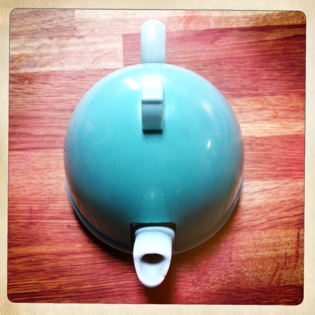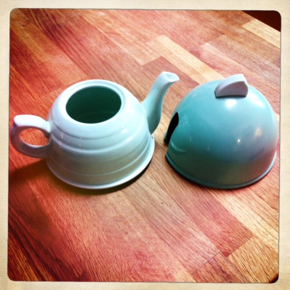 Posted: February 27, 2012 Filed under: Absolutely Nothing To Smile About Leave a commentIt would be criminal not to share a few photos of this absolutely beautiful teapot. It’s a birthday present from my Mother-In-Law and is making me smile very much indeed on this foggy Monday morning. So much so, I’ve photographed it from every angle. The best bit, aside from the shape, colour and its simple Art Deco beauty, is the genius of the felt lined cover – a tea cosy and teapot in one.
