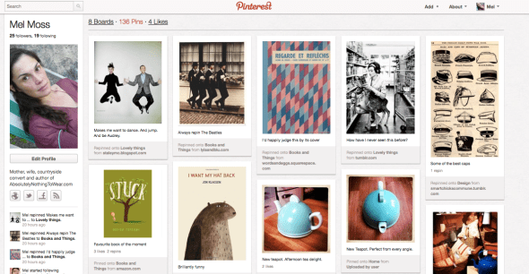 Posted: February 29, 2012 Filed under: Absolutely Nothing To Worry About Leave a commentI wouldn’t say I’m at the obsessive stage of my Pinning, but I’m getting close. I only joined Pinterest a few weeks ago but have been an onlooker for some time. Every day it seems I see another (often unlikely) person has joined the world of Pinning. Some haven’t taken the Pin plunge yet but they have their boards and they’re following furiously. I know I’m quite a late comer to the party, I wasn’t sure I could cope with yet another social media, file sharing, naval gazing outlet but actually I really do love it and have gained more in a few weeks of Pinterest than in years of having a Facebook profile – which I still consider deleting on a daily basis but can’t quite do it. Now that, I’m pretty sure, constitutes a social media addiction.