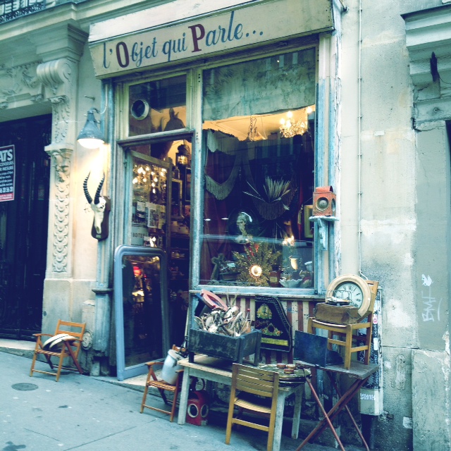 When it comes to shopping, I’m not a huge fan, which is odd for someone who loves clothes, things and most forms of purchasing. Fashiony shops annoy me a bit, or maybe it’s just the other shoppers who annoy me, I’m not sure but either way it’s not my favourite thing to do and so I don’t. I do, however love a junk or curiosity shop and Paris has some of the very best. You have to be a bit careful not to be sucked in to buying over priced junk just because it looks pretty in the display. Here are two places to make my point, the first is the pretty one which can easily trip you up and the other is the real deal – or at least I think so. If we’re completely honest you’re not really going to find a real life junk bargain in a city like Paris unless of course your my husband who finds all kinds of treasure on street corners. More about that later.